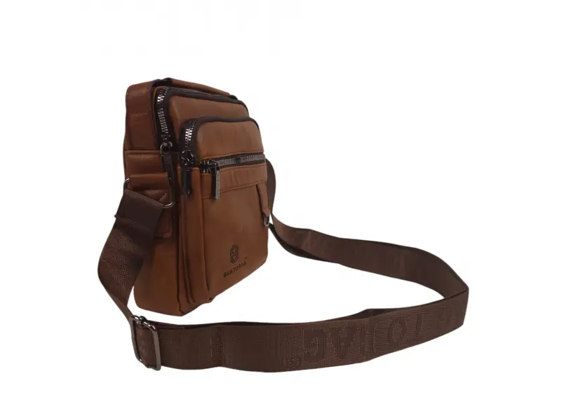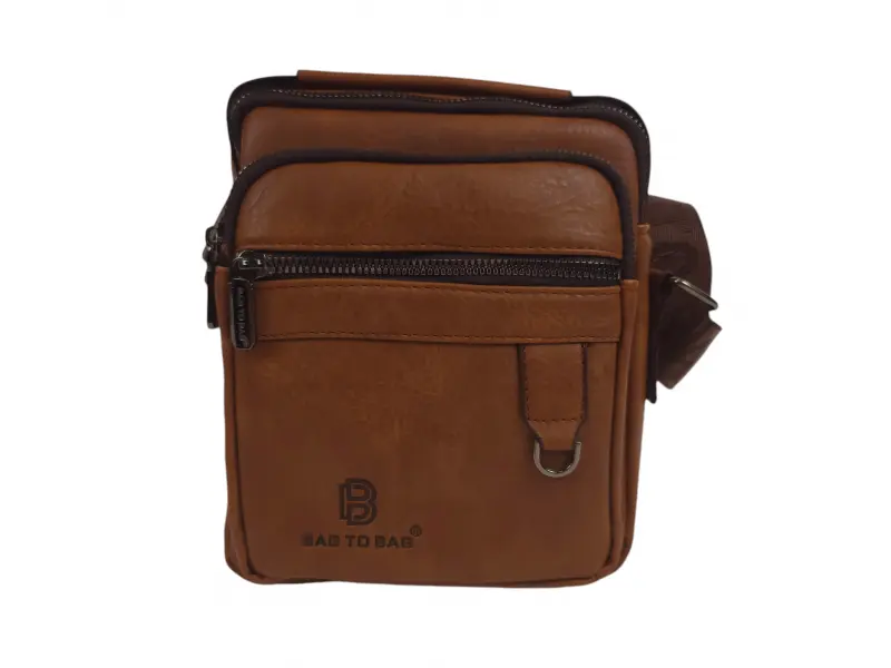Ανοιχτό καφέ ανδρική τσάντα - Ανδρική τσάντα από οικολογικό δέρμα. - Μία κύρια θήκη με φερμουάρ. Εσωτερική τσέπη με φερμουάρ. - Δύο μπροστινές τσέπες με φερμουάρ. - Πίσω τσέπη με φερμουάρ. - Λαβή για μεταφορά στο χέρι. - Μακριά ρυθμιζόμενη λαβή.