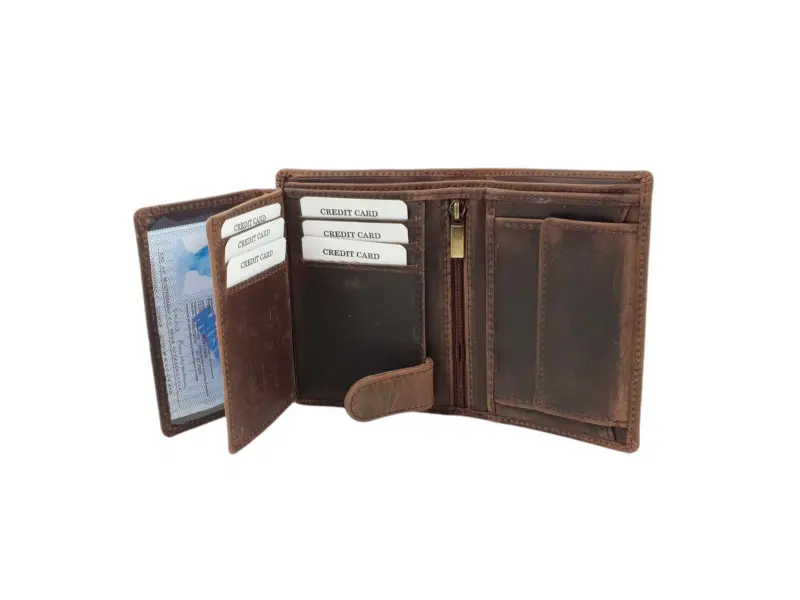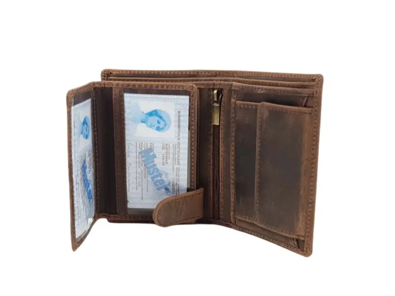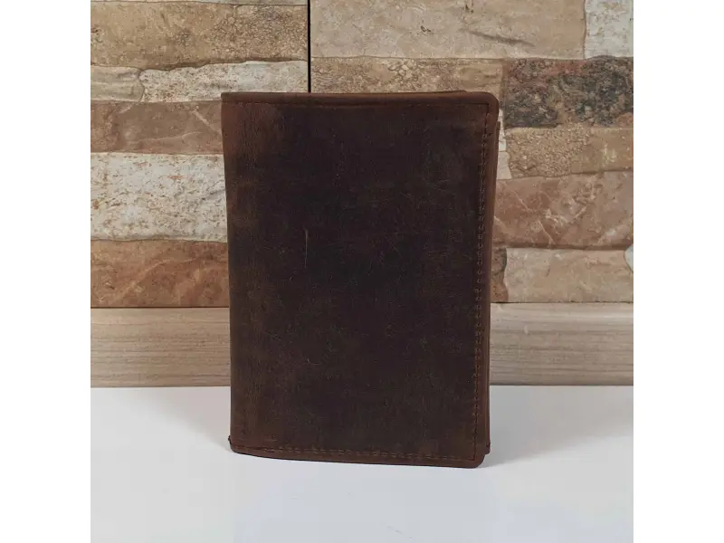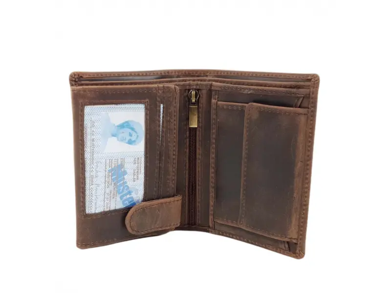 Καφέ ανδρικό πορτοφόλι από γνήσιο δέρμα - Wax hunter. Ποιοτικό πορτοφόλι με θήκη για χαρτονομίσματα, υποδοχές για κάρτες και έγγραφα και εσωτερική θήκη για κέρματα.
