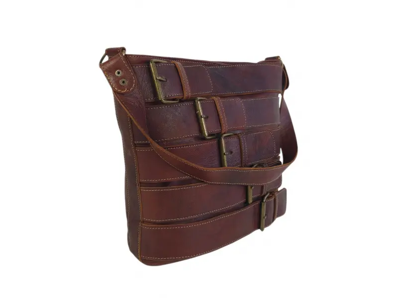 Καφέ τσάντα χειροποίητη από γνήσιο δέρμα. Μαροκινή τσάντα με μοναδικό σχεδιασμό. Κομψή τσάντα με άνετες λαβές. - ePazar.bg