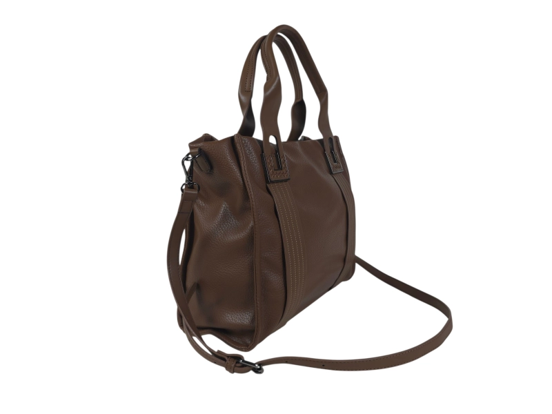 Γυναικεία τσάντα χειρός από ποιοτικό συνθετικό δέρμα. Καφέ γυναικεία τσάντα χειρός με βολικό σχεδιασμό σε όμορφο και λιτό σχέδιο. Γυναικεία τσάντα χειρός κατάλληλη για την εργασία ή την καθημερινή ζωή.