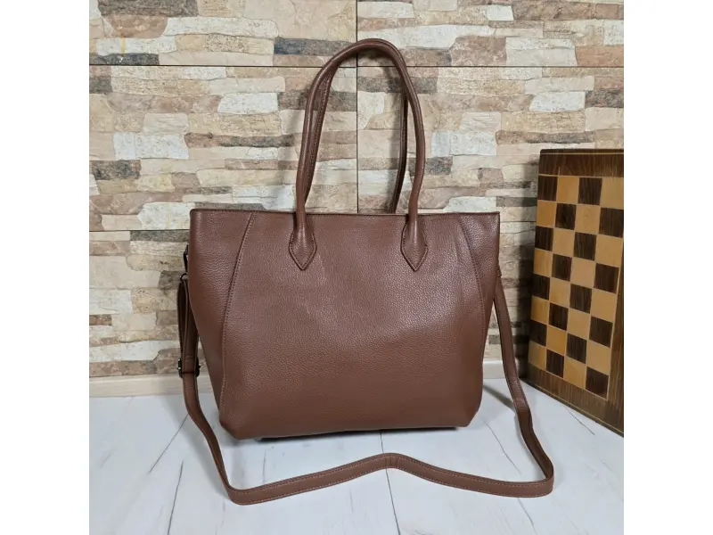 Γυναικεία τσάντα χειρός σε μοντέρνο καφέ χρώμα - Τσάντα χειρός από οικολογικό δέρμα. Ένα κύριο διαμέρισμα χωρισμένο σε δύο με μια τσέπη με φερμουάρ. - Μικρή εσωτερική τσέπη με φερμουάρ. - Θήκη για τηλέφωνο και κλειδιά. - Πίσω τσέπη με φερμουάρ. - Άνετες λαβές. - Εξαιρετικά μακριά λαβή.