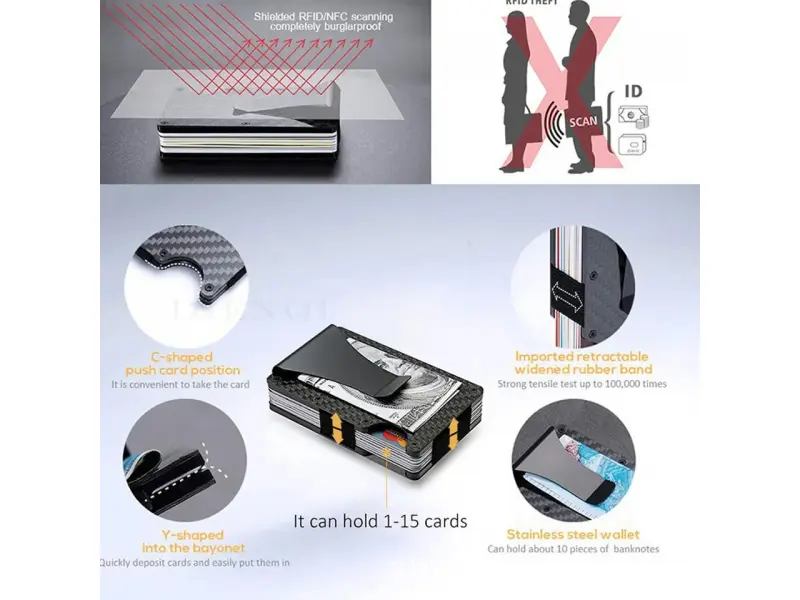 Λεπτό ανδρικό πορτοφόλι Πορτοφόλι από άνθρακα και κράμα αλουμινίου. - Θήκη χαρτονομισμάτων. - Θήκη για κάρτες και προσωπικά έγγραφα.