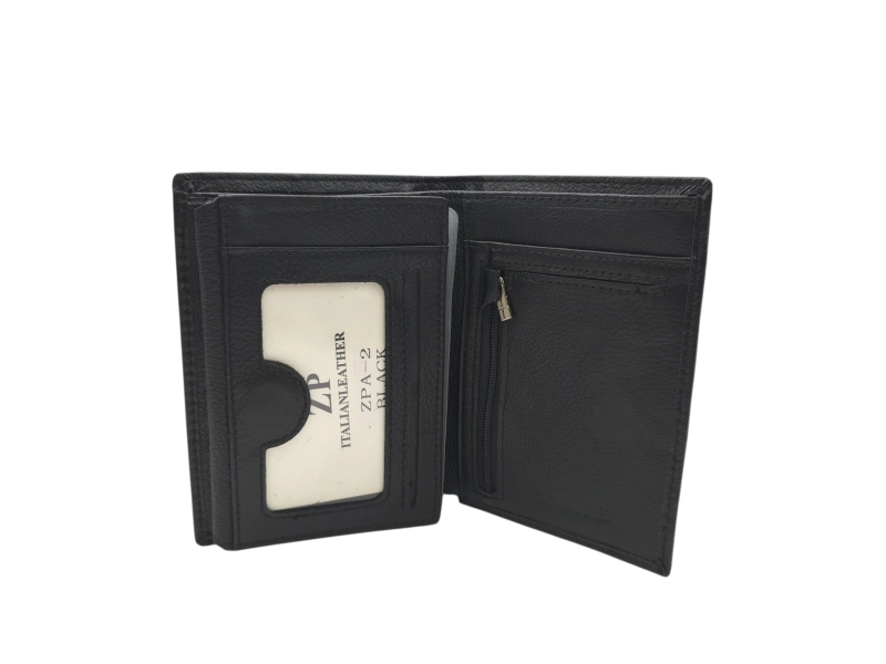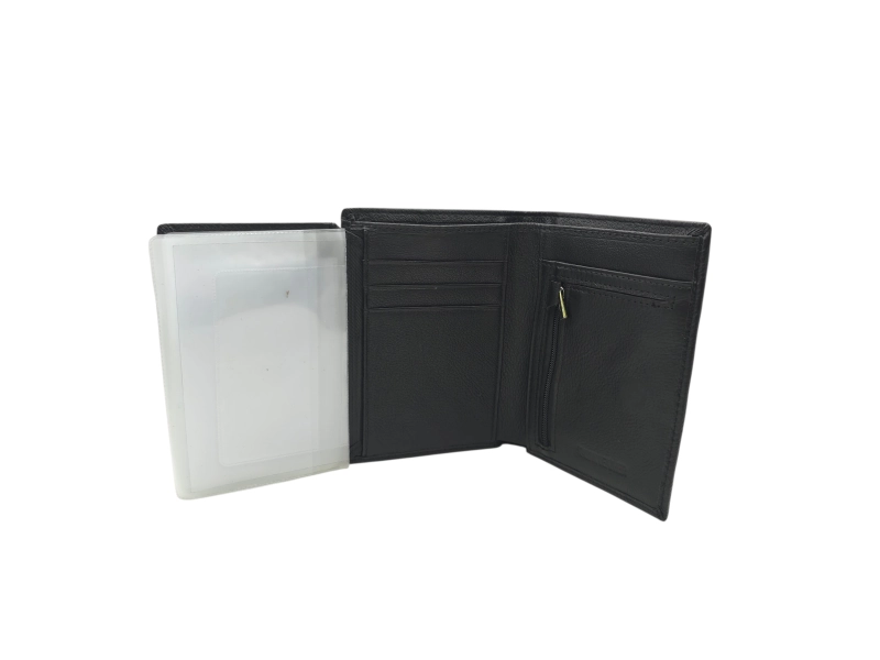 Κάθετο ανδρικό πορτοφόλι από γνήσιο δέρμα υψηλής ποιότητας. Ανδρικό πορτοφόλι με βολικές θήκες για χαρτονομίσματα, κέρματα, κάρτες και προσωπικά έγγραφα. Πορτοφόλι με νέο σχέδιο.