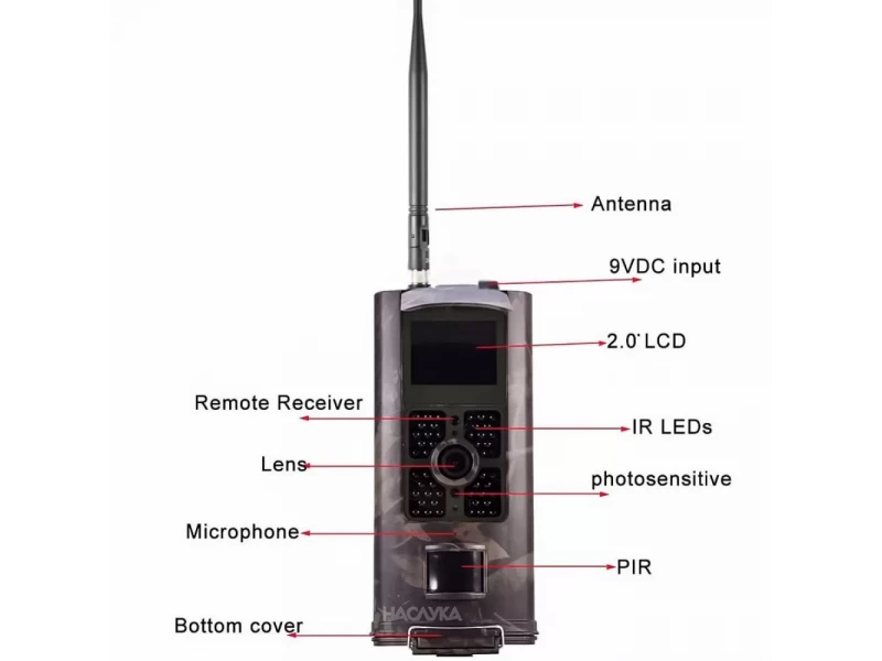 Η κάμερα κυνηγιού υποστηρίζει τηλεχειριστήριο SMS. Κυνηγετική κάμερα HC-700M με οθόνη LCD (2 ιντσών) και ενσωματωμένο αισθητήρα κίνησης (PIR)