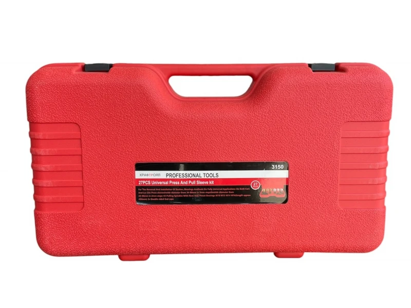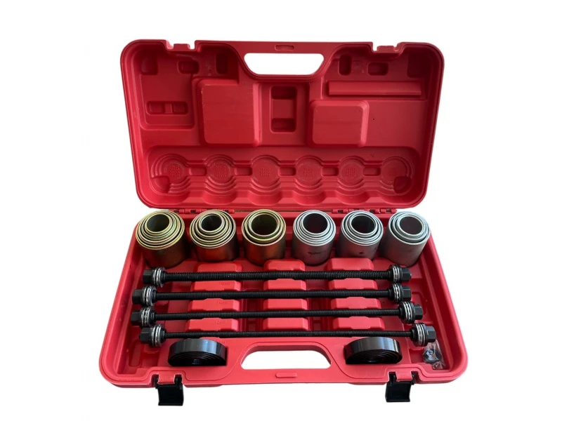 🔧 Κιτ γενικής χρήσης για την εγκατάσταση και αφαίρεση δακτυλίων, ρουλεμάν και τακακιών - 26 τεμάχια Επαγγελματικό σετ 26 τεμαχίων , κατάλληλο για την εγκατάσταση και αφαίρεση δακτυλίων σεληνίου, ρουλεμάν, στεγανοποιητικών και στηριγμάτων στήριξης . Ένα απαραίτητο εργαλείο για συνεργεία αυτοκινήτων και μηχανουργεία. ⚙️ Χαρακτηριστικά και περιεχόμενο: Άξονες με παξιμάδια και ωστικά ρουλεμάν : M10, M12, M14, M16 - σπειρώματα εξαγωγής για διάφορες εφαρμογές 2 προσαρμογείς με διαστάσεις : Ø42-48 / 54-60 Ø36-42 / 48-54 / 60-66 Μανίκια με κουμπιά (Χρυσό) : 44xØ34, 46xØ36, 54xØ44, 56xØ46, 58xØ48 66xØ56, 68xØ58, 70xØ60, 78xØ68, 80xØ70, 84xØ72 Μανίκια με κουμπώματα (Ασημί) : 48xØ38, 50xØ40, 52xØ42, 60xØ50, 62xØ52 64xØ54, 72xØ62, 74xØ64, 76xØ66 ✅ Πλεονεκτήματα: Καθολική συμβατότητα για διάφορα αυτοκίνητα Ιδανικό για συναρμολόγηση και αποσυναρμολόγηση χωρίς ζημιές Κατάλληλο για επαγγελματική χρήση σε εργαστήρια Ανθεκτικό κουτί για αποθήκευση και εύκολη μεταφορά
