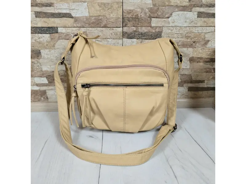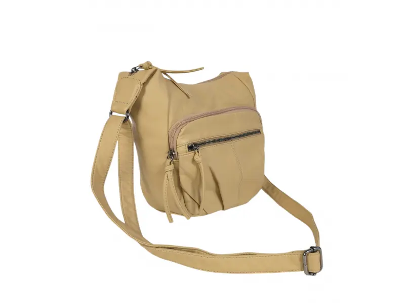Τσάντα χειρός με ενδιαφέρον σχέδιο - Γυναικεία τσάντα χειρός από βρασμένο δέρμα. - Μία κύρια θήκη με φερμουάρ. - Μικρή εσωτερική τσέπη με φερμουάρ. - Θήκες για τηλέφωνο και έγγραφα. - Δύο μπροστινές τσέπες με φερμουάρ. - Πίσω τσέπη με φερμουάρ. - Άνετη μακριά ρυθμιζόμενη λαβή.