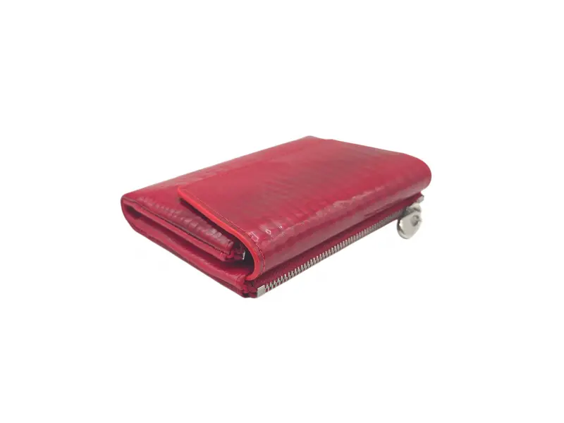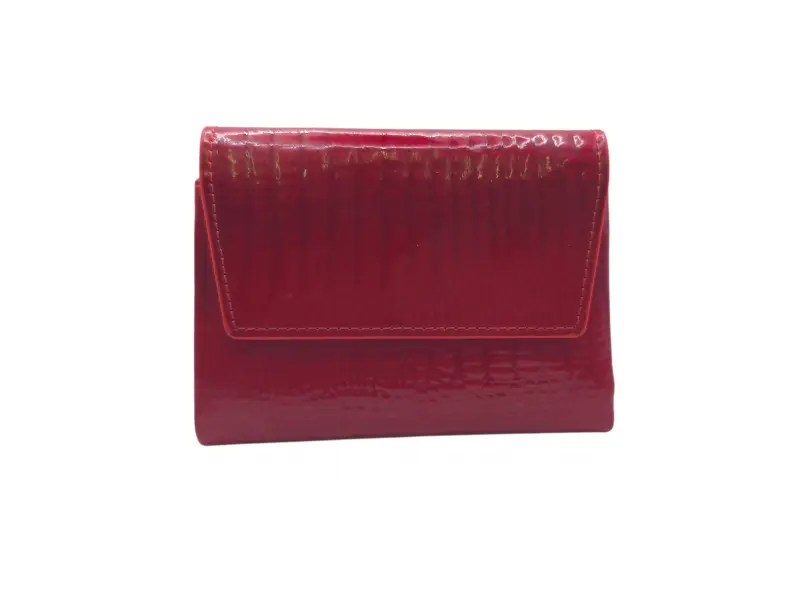 Κόκκινο γυναικείο πορτοφόλι από γνήσιο δέρμα και λουστρίνι. Μεσαίο γυναικείο πορτοφόλι με θήκες για χαρτονομίσματα, υποδοχές για κάρτες και ταυτότητες και θήκη για κέρματα με φερμουάρ. Κομψό γυναικείο πορτοφόλι με ενδιαφέρον σχέδιο.
