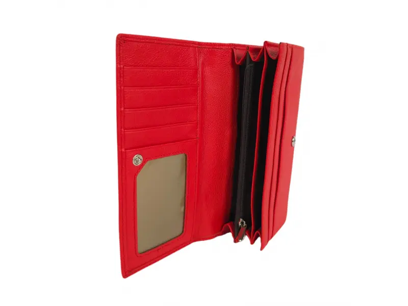 Αγοράστε τώρα ένα κόκκινο γυναικείο πορτοφόλι από ποιοτικό γνήσιο δέρμα σε χαμηλή τιμή. Μεγάλο γυναικείο πορτοφόλι με βολική διάταξη και πολλές υποδοχές για κάρτες και προσωπικά έγγραφα.
