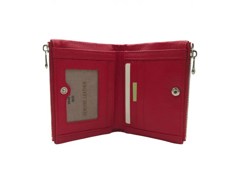 Μοντέρνο γυναικείο πορτοφόλι - Γυναικεία τσάντα από γνήσιο δέρμα. - Κλείσιμο με κουμπί κλικ. - Θήκες για κάρτες. - Θέσεις για χαρτονομίσματα. - δύο τσέπες για κέρματα με φερμουάρ.