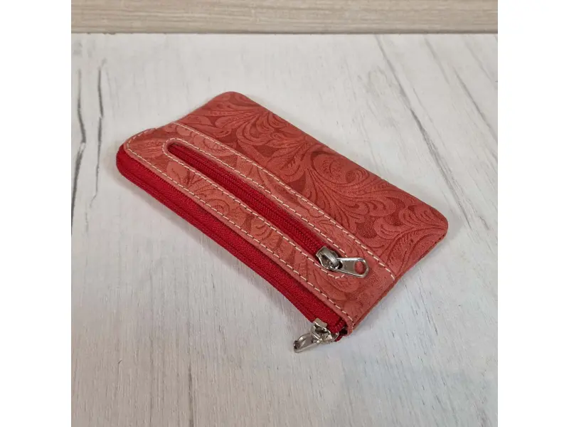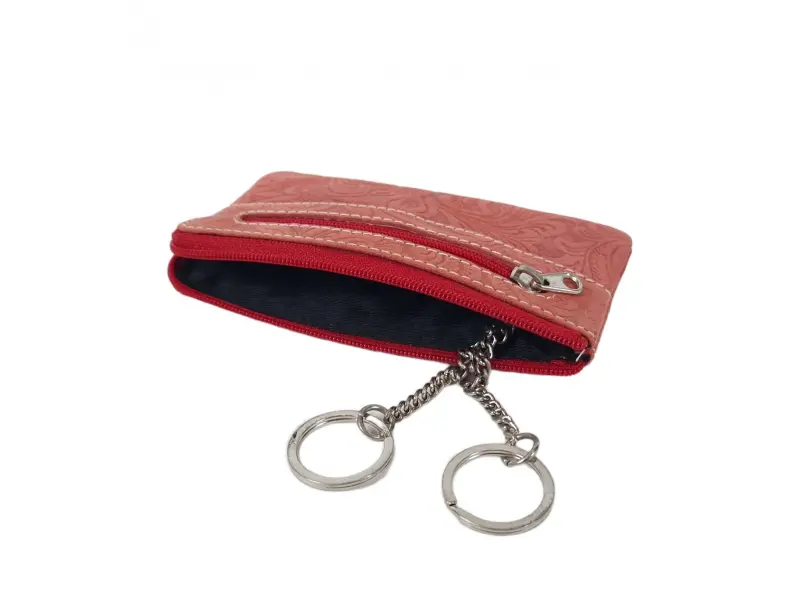 Πορτοφόλι - μπρελόκ με όμορφο σχέδιο - Πορτοφόλι - μπρελόκ από ανάγλυφο γνήσιο δέρμα. - Θήκη για χαρτονομίσματα. - Θήκη για κέρματα. - Δύο κρίκοι για κρέμασμα κλειδιών.