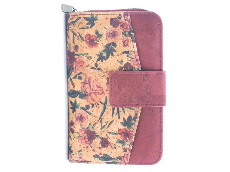 Γυναικείο πορτοφόλι με λουλούδια Γυναικείο πορτοφόλι υψηλής ποιότητας από οικολογικό υλικό - φελλό. Άνετο γυναικείο πορτοφόλι με κούμπωμα και εξωτερική τσέπη για κέρματα με φερμουάρ, θήκη για κέρματα και μικρή τσέπη για κέρματα με φερμουάρ, πολλές υποδοχές για κάρτες και έγγραφα και θήκη για χαρτονομίσματα.