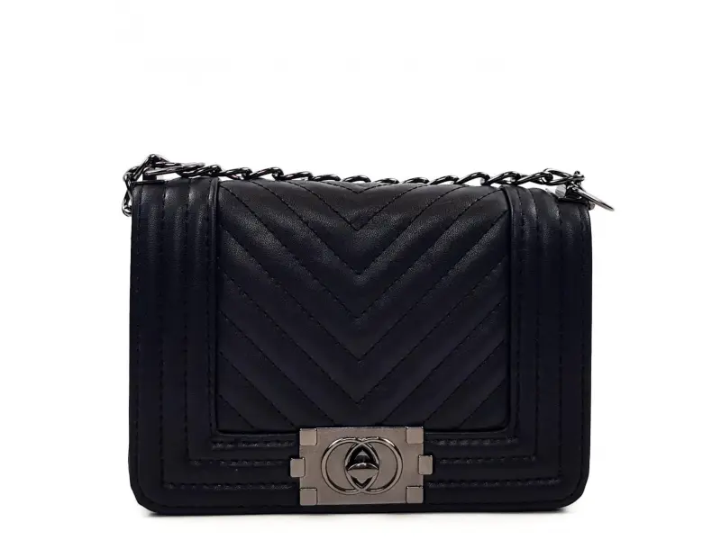 Κομψή μικρή τσάντα - Μικρή έκδοση. Ενδιαφέρουσα μικρή γυναικεία τσάντα σε μικρή έκδοση. Κομψή μαύρη μικρή τσάντα με μεταλλική αλυσίδα από ηλεκτρονικό κατάστημα τσαντών - ePazar.bg