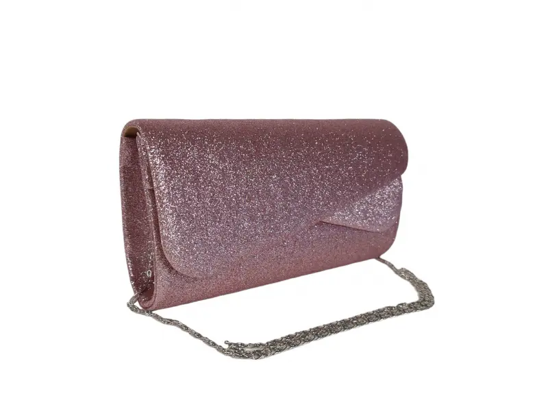 Λαμπερή ροζ τσάντα χειρός - Επίσημη τσάντα χειρός με μία θήκη. - Άνοιγμα και κλείσιμο με μαγνητικό κουμπί. - Μακριά λαβή τύπου αλυσίδας σε ασημί χρώμα.