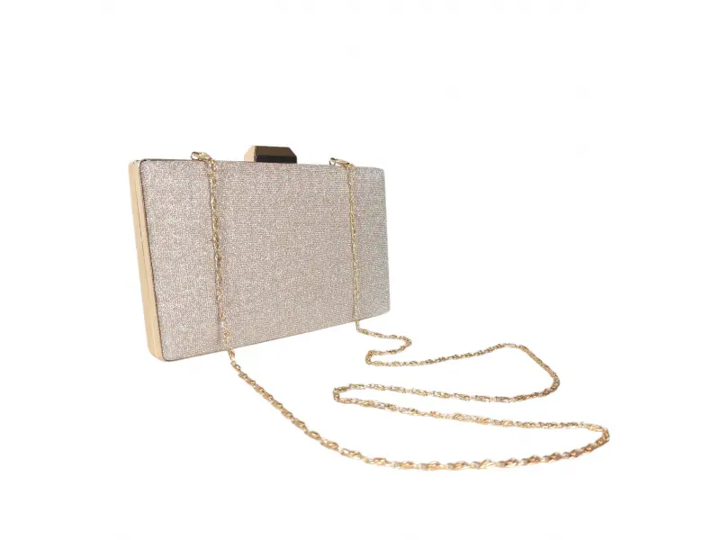 Κομψή, κομψή τσάντα - Επίσημη τσάντα χειρός με μία θήκη. - Άνοιγμα και κλείσιμο με μηχανισμό. - Χρυσό περίγραμμα. - Λαβή τύπου μακριάς αλυσίδας.
