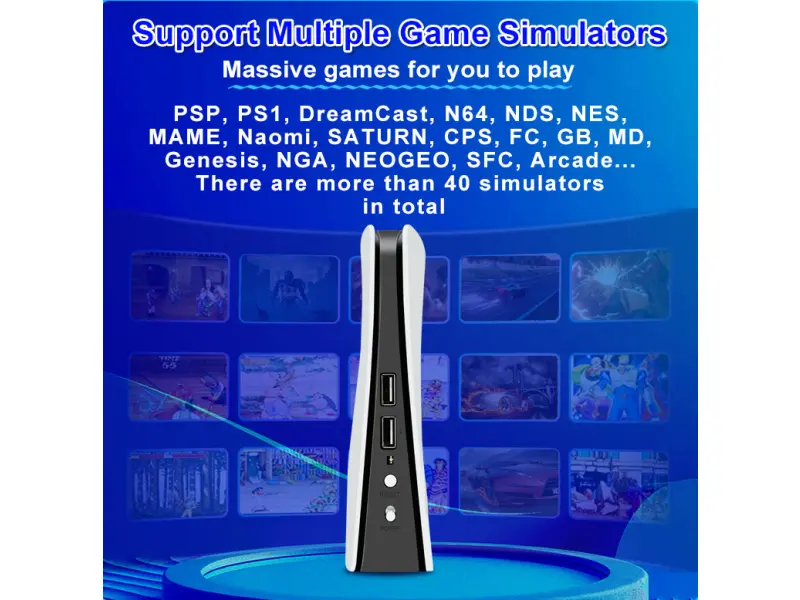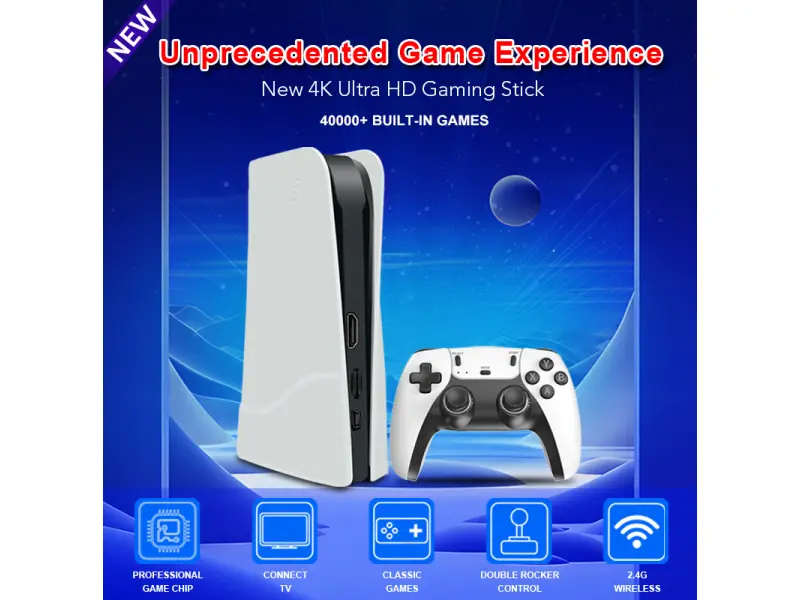 Το RS5 4K Game Stick είναι μια εξαιρετικά συμπαγής κονσόλα παιχνιδιών που συγκεντρώνει όλη τη μαγεία του ρετρό παιχνιδιού σε μία μικρή συσκευή. Με πάνω από 46.000 προεγκατεστημένα παιχνίδια και υποστήριξη για περισσότερους από 50 εξομοιωτές, θα βυθιστείτε στον κόσμο των κλασικών παιχνιδιών από PS1, PSP, NES, SNES, Sega, MAME, N64, DreamCast και πολλά άλλα! Απλώς συνδέστε την στην θύρα HDMI της τηλεόρασής σας και απολαύστε εικόνα 4K και ατελείωτη ψυχαγωγία.