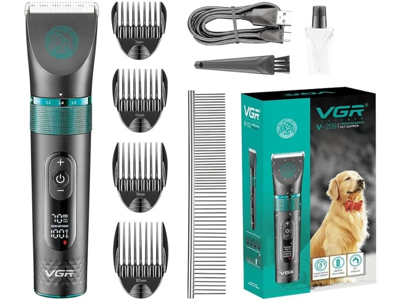 Μια premium κουρευτική μηχανή για κατοικίδια με προηγμένη τεχνολογία και εξαρτήματα υψηλής ποιότητας που εξασφαλίζουν ομαλή και αποτελεσματική επένδυση. Επαγγελματικές λεπίδες: Εξοπλισμένη με κεραμική λεπίδα και κεφαλή τιτανίου, αυτή η κουρευτική μηχανή παρέχει ακριβή και λεία επένδυση χωρίς να καταστρέφει τη γούνα του κατοικίδιου ζώου σας. Ο εργονομικός σχεδιασμός και η ελαφρότητα το καθιστούν εύκολο στη χρήση, μειώνοντας την κούραση των χεριών κατά τη διάρκεια μακρών περικοπών. Προδιαγραφές: Χρώμα: Μαύρο Μπαταρία: Μπαταρία λιθίου 2000mAh Χρόνος φόρτισης: 3 ώρες Χρόνος λειτουργίας: 200 λεπτά Τροφοδοσία: 5V –1A Μέγιστες στροφές ανά λεπτό: 7000 rpm Τι περιλαμβάνεται: Μηχάνημα VGR V-209 4 τεμ. εξαρτήματα (3 / 6 / 9 / 12 mm) Χτένα Λιπαντικό λάδι Βούρτσα καθαρισμού Καλώδιο φόρτισης USB