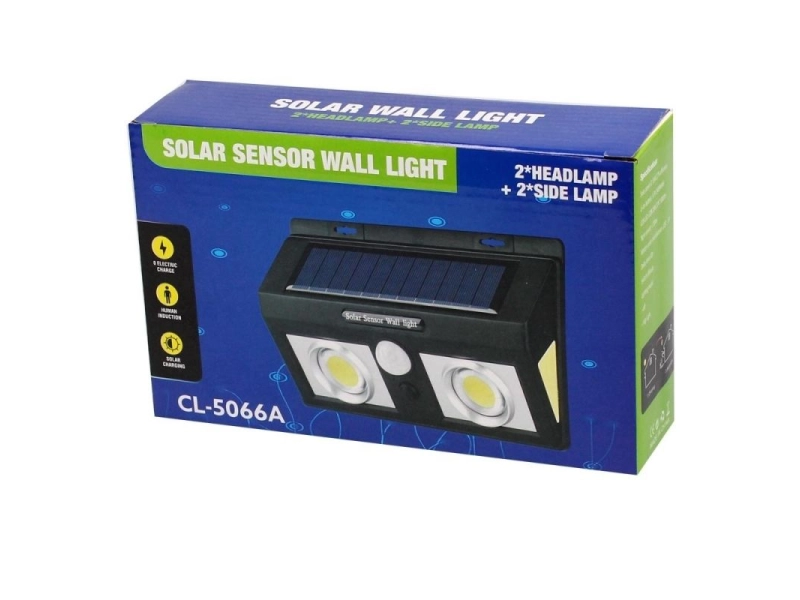 Φωτίστε την είσοδό σας με την εξωτερική ηλιακή λάμπα LED CL-5066A - έναν ισχυρό προβολέα με αισθητήρα κίνησης, διπλό μεγεθυντικό φακό και πλευρικά φώτα. Μια οικονομική και ασφαλής λύση για το σπίτι σας! Παραγγείλτε τώρα και απολαύστε ηρεμία και άνεση.