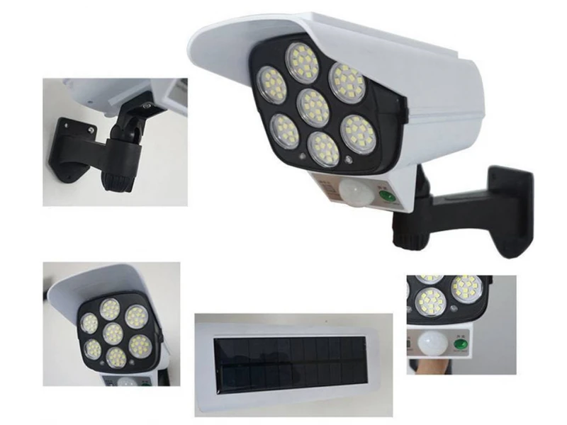 - Ηλιακό φως και προστατευτική απομίμηση κάμερας παρακολούθησης 2 σε 1 - Προστατέψτε το σπίτι σας από εισβολείς. Με 77 φωτεινά LED που ενεργοποιούνται με κίνηση και κομψό σχεδιασμό χαμηλού προφίλ. Επιπλέον, μια ρεαλιστική απομίμηση κάμερας ασφαλείας.