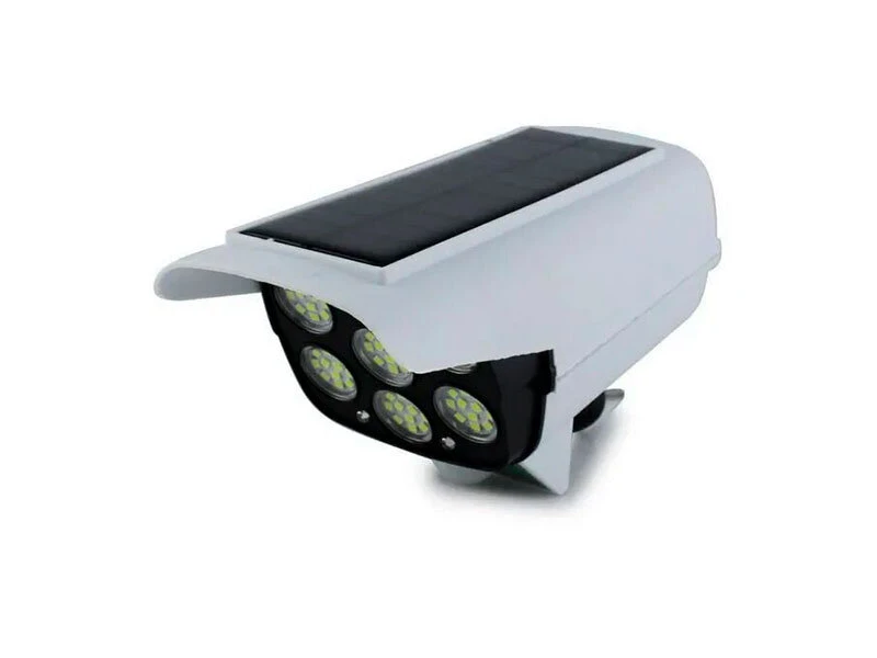 Ηλιακή λάμπα LED Η κάμερα τύπου είναι μια ισχυρή επιτοίχια λάμπα με ενσωματωμένο ηλιακό πάνελ. Προσαρμόστε στην επιθυμητή γωνία, ελέγξτε το τηλεχειριστήριο και τρομάξτε τους εισβολείς! Ισχύς 180W με 77 LED. Ιδανικό για κήπο, γκαζόν, αίθριο, γκαράζ, βεράντα, δρομάκι. Κάντε τη ζωή σας πιο άνετη και φωτεινή!