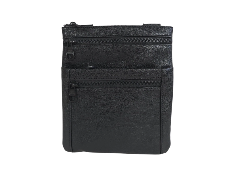 Συμπαγής ανδρική τσάντα ώμου - Ανδρική τσάντα από οικολογικό δέρμα. - Μία κύρια θήκη με φερμουάρ. - Τρεις μπροστινές τσέπες με φερμουάρ. - Πίσω τσέπη με φερμουάρ. - Μακριά, ρυθμιζόμενη λαβή.