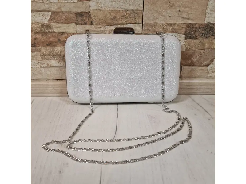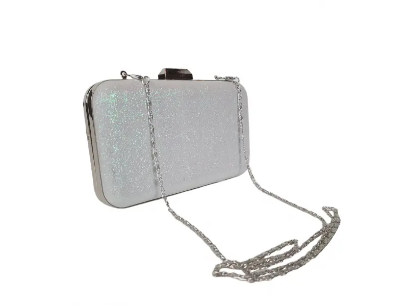 τσάντα αποφοίτησης - Επίσημη τσάντα χειρός με μία θήκη. - Άνοιγμα και κλείσιμο με μηχανισμό. - Ασημένια μπορντούρα. - Λαβή τύπου μακριάς αλυσίδας.