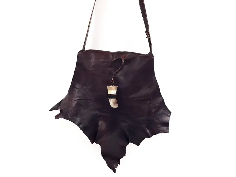 Μαροκινή τσάντα - φύλλο και δόντι. Δερμάτινη γυναικεία τσάντα σε σχήμα φύλλου, κλείσιμο με καπάκι και δόντι. Ποιοτική μαροκινή τσάντα, χειροποίητη από το ηλεκτρονικό κατάστημα ePazar.bg