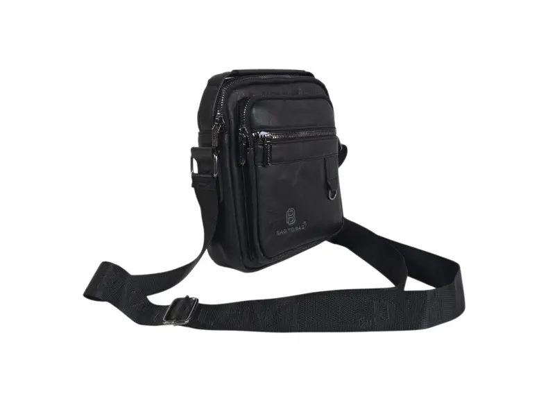 Μοντέρνα ανδρική τσάντα από ποιοτικό οικολογικό δέρμα. Πρακτική τσάντα με πολλές θήκες και ανθεκτικά φερμουάρ. Μαύρη ανδρική τσάντα με μακριά ρυθμιζόμενη λαβή και άνετη λαβή για μεταφορά στο χέρι.