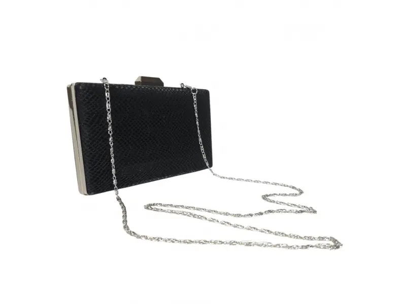 Κομψή τσάντα χειρός για επίσημη εκδήλωση - χορό αποφοίτησης, γάμο. Όμορφη κομψή τσάντα σε μαύρο χρώμα με μία θήκη με μηχανισμό και μακριά λαβή τύπου αλυσίδας.