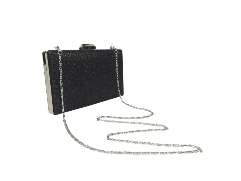 Μαύρη κομψή τσάντα χειρός - Επίσημη τσάντα χειρός με μία θήκη. - Άνοιγμα και κλείσιμο με μηχανισμό. - Μεταλλικό περίγραμμα. - Λαβή τύπου μακριάς αλυσίδας.