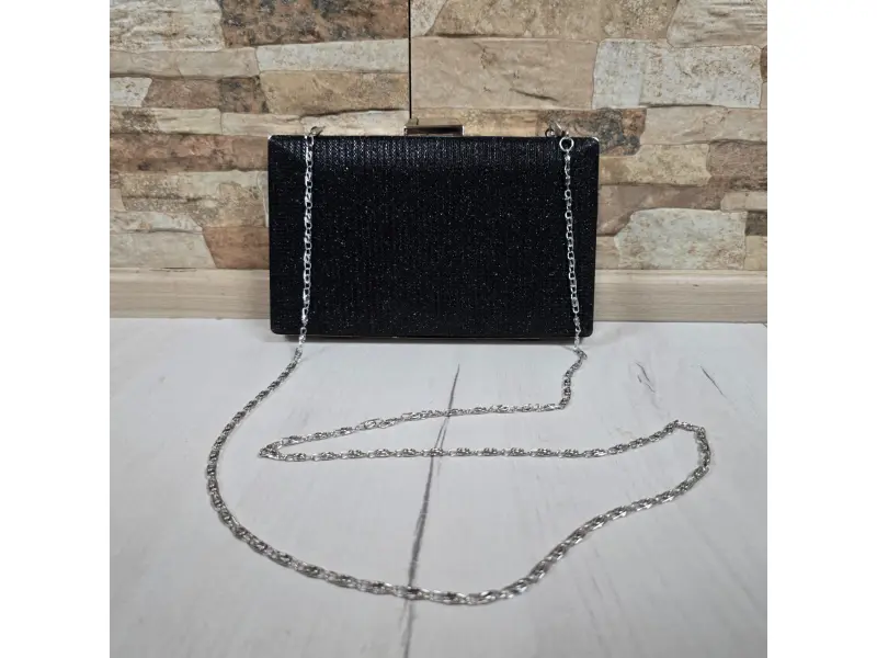 Κομψή τσάντα χειρός για επίσημη εκδήλωση - χορό αποφοίτησης, γάμο. Όμορφη κομψή τσάντα σε μαύρο χρώμα με μία θήκη με μηχανισμό και μακριά λαβή τύπου αλυσίδας.