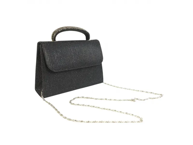 Νέο μοντέλο κομψής τσάντας - Επίσημη τσάντα χειρός με μία θήκη. - Άνοιγμα και κλείσιμο με μαγνήτη. - Λαβή για μεταφορά στο χέρι. - Μακριά λαβή τύπου αλυσίδας σε ασημί χρώμα.