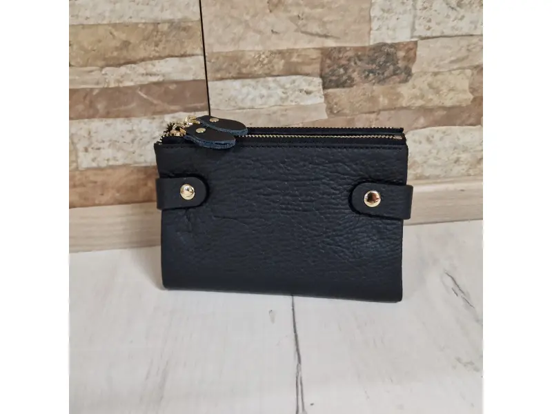 Συμπαγές γυναικείο πορτοφόλι - Γυναικεία τσάντα από γνήσιο δέρμα. - Κλείσιμο με κουμπιά tic-tac. - Θήκες για κάρτες. - Θήκη για χαρτονομίσματα. Δύο τσέπες με φερμουάρ.