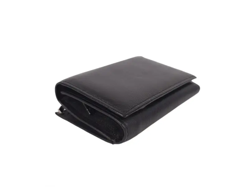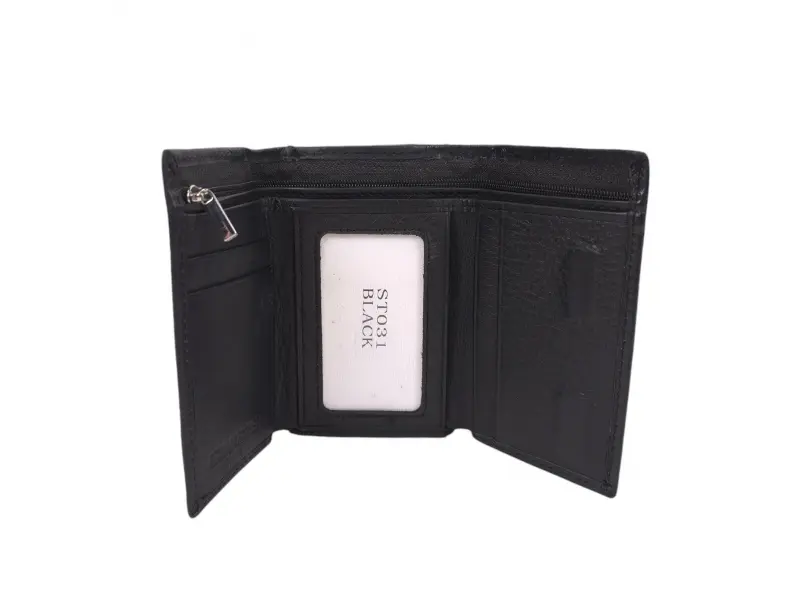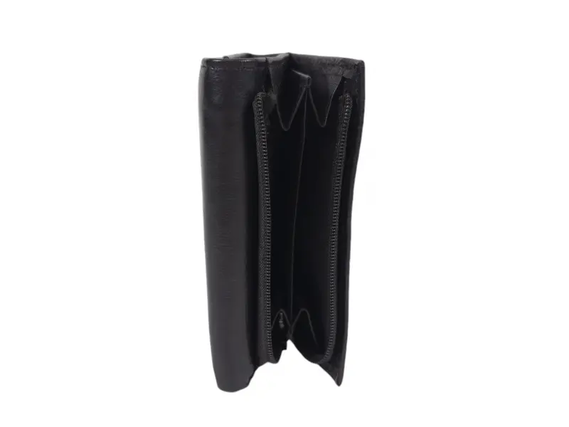 Άνετο γυναικείο πορτοφόλι από γνήσιο δέρμα υψηλής ποιότητας. Μαύρο πορτοφόλι με θήκες για χαρτονομίσματα, πολλές υποδοχές για κάρτες και προσωπικά έγγραφα και τσέπη για κέρματα με φερμουάρ. Μοντέρνο γυναικείο πορτοφόλι με μαγνητικό κλείσιμο.
