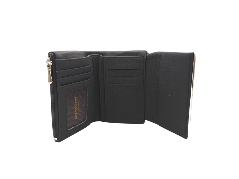 Το πορτοφόλι διαθέτει θήκες για κάρτες, διαμέρισμα για χαρτονομίσματα και τσέπη για κέρματα με φερμουάρ.