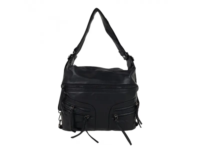 Γυναικεία τσάντα - σακίδιο πλάτης με πολλές θήκες - Γυναικεία τσάντα - σακίδιο πλάτης από βρασμένο δέρμα. - Δύο κύριες θήκες με φερμουάρ. - Μικρή εσωτερική τσέπη με φερμουάρ. - Θήκες για τηλέφωνο και έγγραφα. - Πέντε μπροστινές τσέπες με φερμουάρ. - Πίσω τσέπη με φερμουάρ. - Βολική λαβή μεταφοράς. - Μακριά ρυθμιζόμενη λαβή.