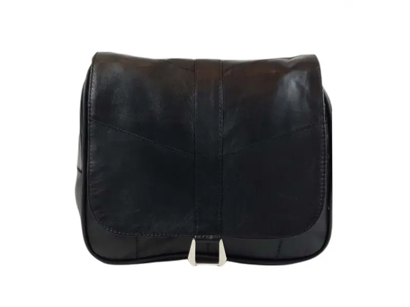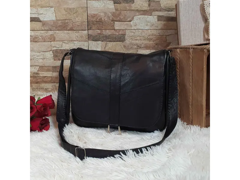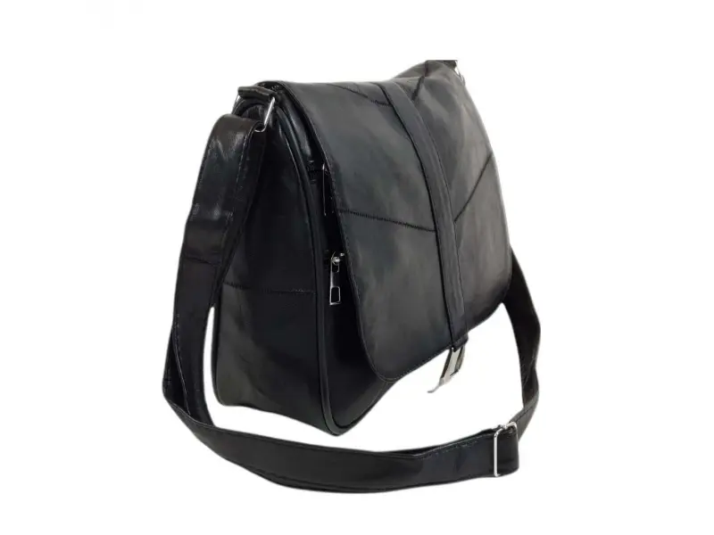 Γυναικεία τσάντα υψηλής ποιότητας από γνήσιο δέρμα αρνιού. Μαύρη τσάντα με μία κύρια θήκη με φερμουάρ και μαγνητικό κλείσιμο, μια εσωτερική τσέπη με φερμουάρ, μια μπροστινή τσέπη κάτω από το καπάκι με φερμουάρ και μια πίσω τσέπη με φερμουάρ. Άνετη τσάντα με μακριά ρυθμιζόμενη λαβή.