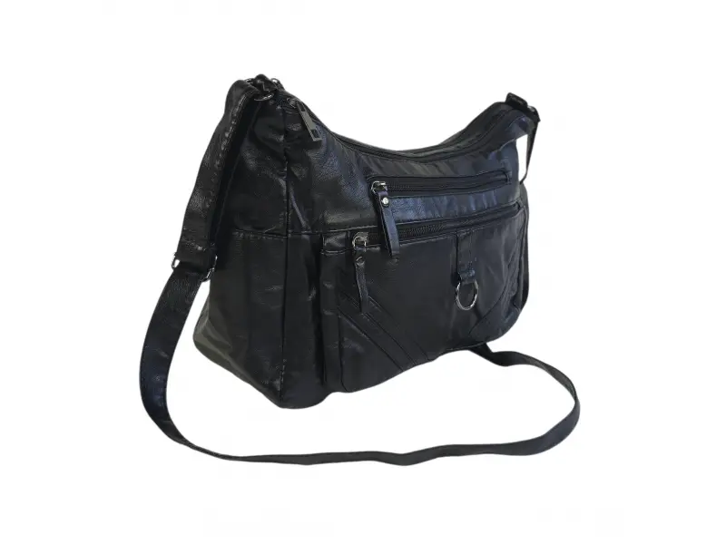 Γυναικεία τσάντα ώμου - Γυναικεία τσάντα χειρός από τεχνητό δέρμα. - Δύο κύριες θήκες με φερμουάρ. - Μικρή εσωτερική τσέπη με φερμουάρ. - Δύο μπροστινές τσέπες με φερμουάρ. - Δύο μικρές πλαϊνές τσέπες. - Πίσω τσέπη με φερμουάρ. - Άνετη μακριά ρυθμιζόμενη λαβή.