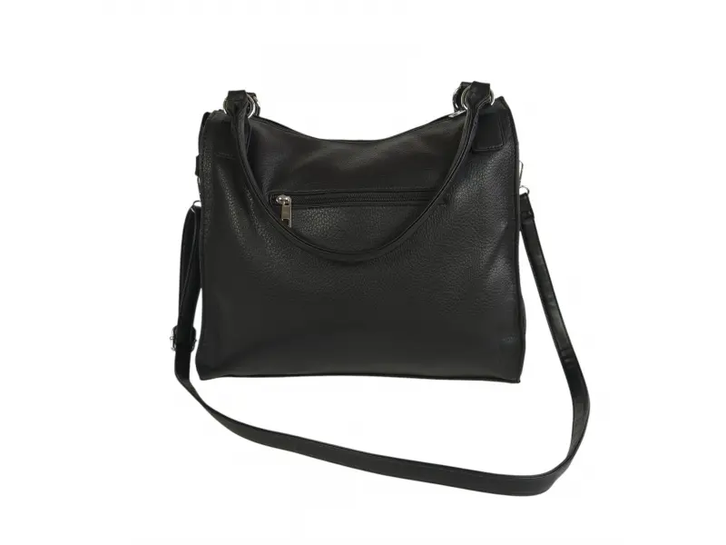 Άνετη τσάντα χειρός - Τσάντα χειρός από οικολογικό δέρμα. - Δύο κύριες θήκες με κλείσιμο με φερμουάρ. Εσωτερική θήκη με φερμουάρ. - Χώρος για τηλέφωνο και κλειδιά. Εσωτερική τσέπη με φερμουάρ. - Πίσω τσέπη με φερμουάρ. Άνετοι ιμάντες. - Εξαιρετικά μακριά λαβή.
