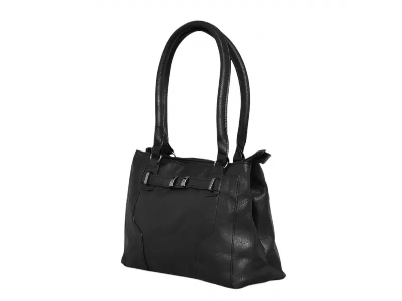 Μεγάλη τσάντα χειρός από ποιοτικό συνθετικό δέρμα. Καθημερινή τσάντα χειρός με πρακτικές θήκες και άνετους ιμάντες ώμου. Μαύρη τσάντα χειρός με ενδιαφέρον σχέδιο.