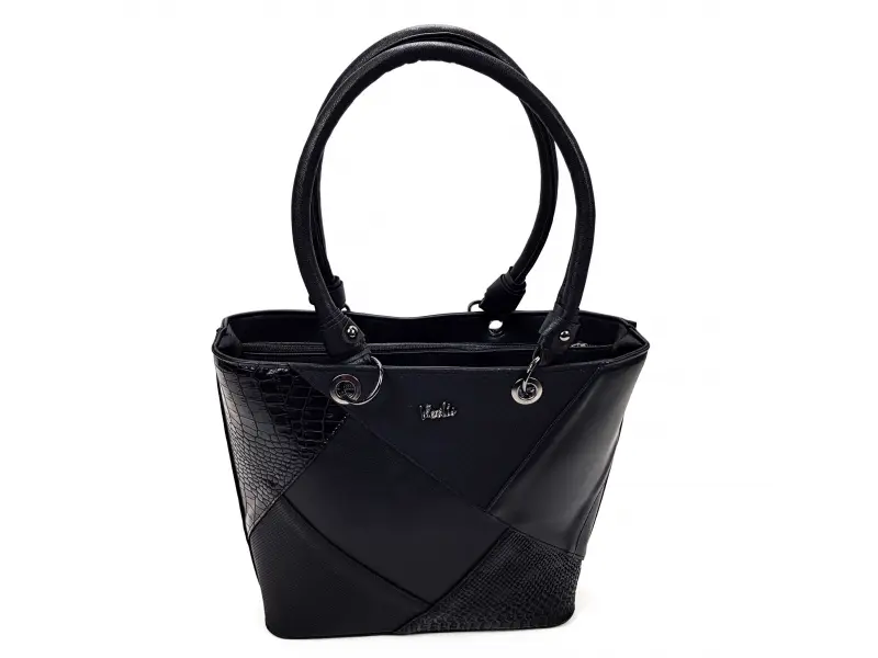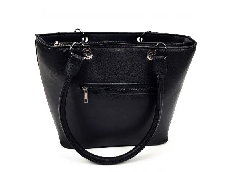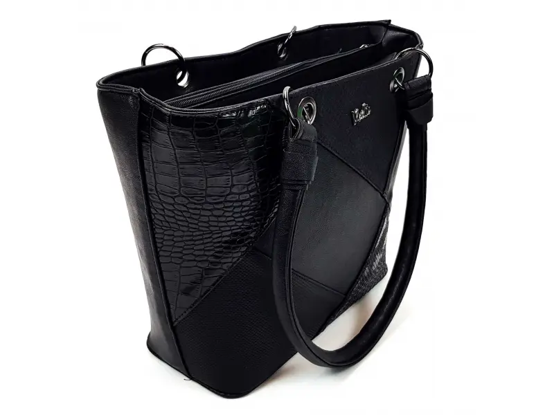 Μαύρη τσάντα χειρός - Valeri. Καθημερινή τσάντα χειρός από οικολογικό δέρμα σε μαύρο χρώμα. Βουλγαρική τσάντα χειρός με μακριές και άνετες λαβές, τρεις μεγάλες εσωτερικές θήκες με φερμουάρ.