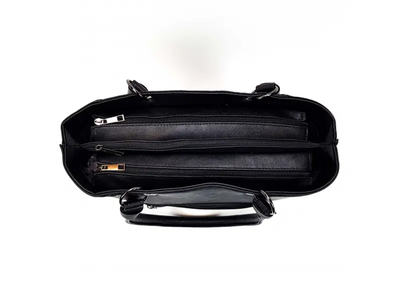Γυναικεία τσάντα χειρός από ποιοτικό οικολογικό δέρμα, κατασκευασμένη στη Βουλγαρία. Τσάντα με τρεις μεγάλες θήκες που κλείνουν με φερμουάρ, εσωτερικό χώρο για τηλέφωνο και έγγραφα, εσωτερική και πίσω τσέπη με φερμουάρ. Τσάντα με μακριές και άνετες λαβές.