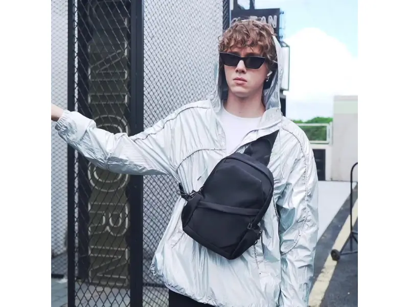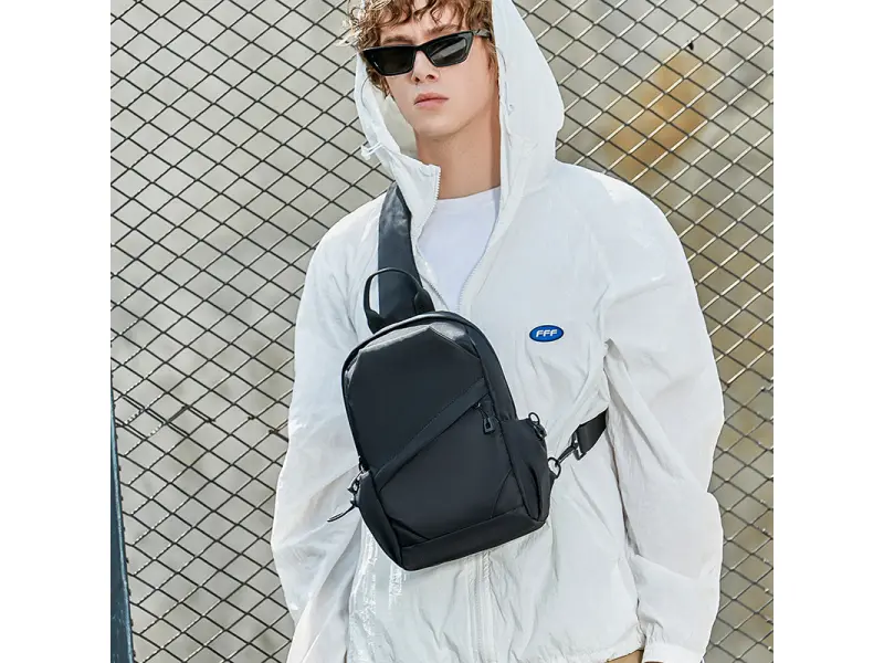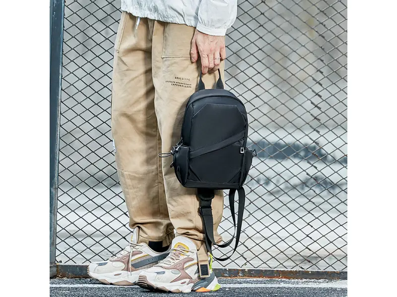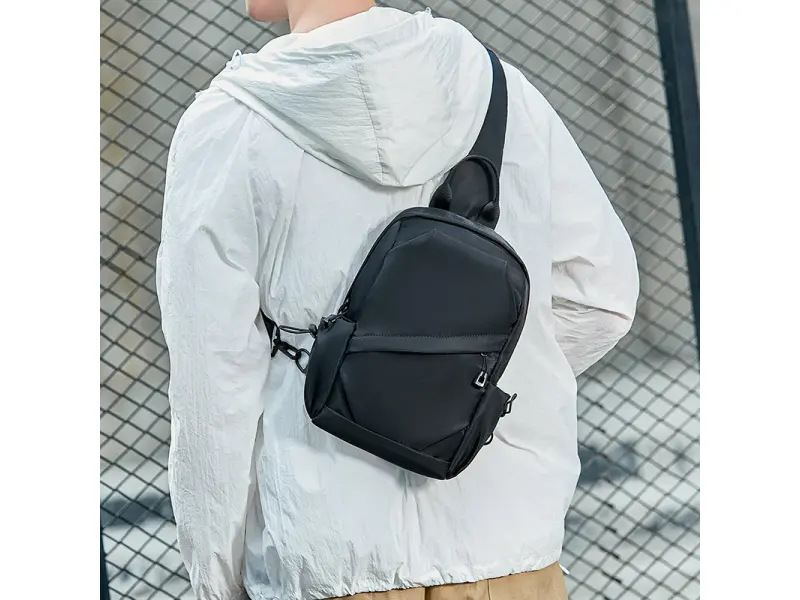 - Μια ανδρική τσάντα που μπορεί να φορεθεί στο στήθος, τον ώμο ή την πλάτη σαν σακίδιο πλάτης.