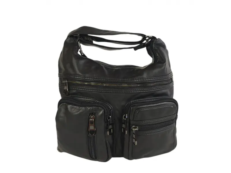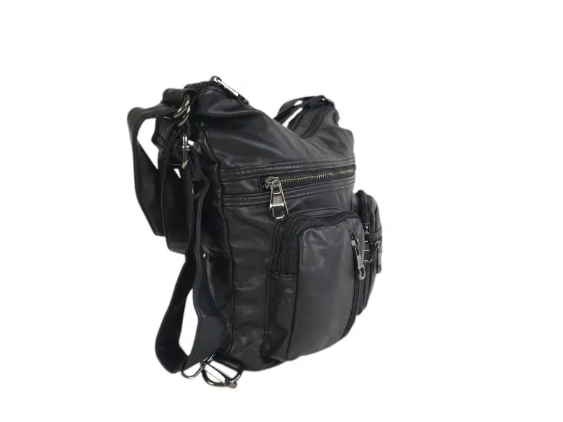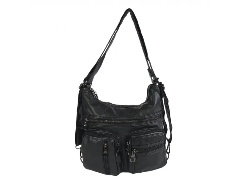 Γυναικεία τσάντα - σακίδιο πλάτης με πολλές θήκες - Γυναικεία τσάντα - σακίδιο πλάτης από βρασμένο δέρμα. - Δύο κύριες θήκες με φερμουάρ. - Μικρή εσωτερική τσέπη με φερμουάρ. - Θήκες για τηλέφωνο και έγγραφα. - Πέντε μπροστινές τσέπες με φερμουάρ. - Πίσω τσέπη με φερμουάρ. - Βολική λαβή μεταφοράς. - Μακριά ρυθμιζόμενη λαβή.