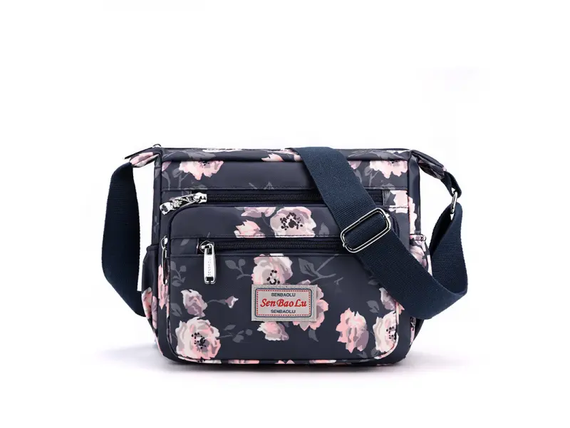 Άνετη τσάντα χειρός - Γυναικεία τσάντα χειρός από ύφασμα. - Μία κύρια θήκη με φερμουάρ. - Τρεις μπροστινές τσέπες με φερμουάρ. - Πίσω τσέπη με φερμουάρ. Δύο πλαϊνές τσέπες. - Μικρή εσωτερική τσέπη με φερμουάρ. - Θήκη για τηλέφωνο και έγγραφα. - Ρυθμιζόμενη, μακριά λαβή.