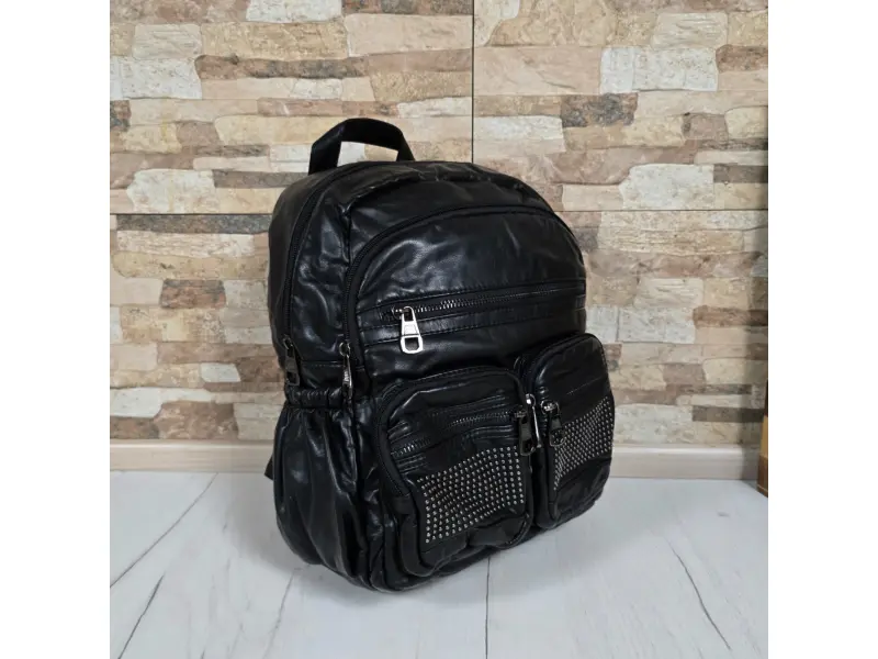 Μαύρο σακίδιο πλάτης από βρασμένο δέρμα | Σακίδια πλάτης (ePazar.bg)