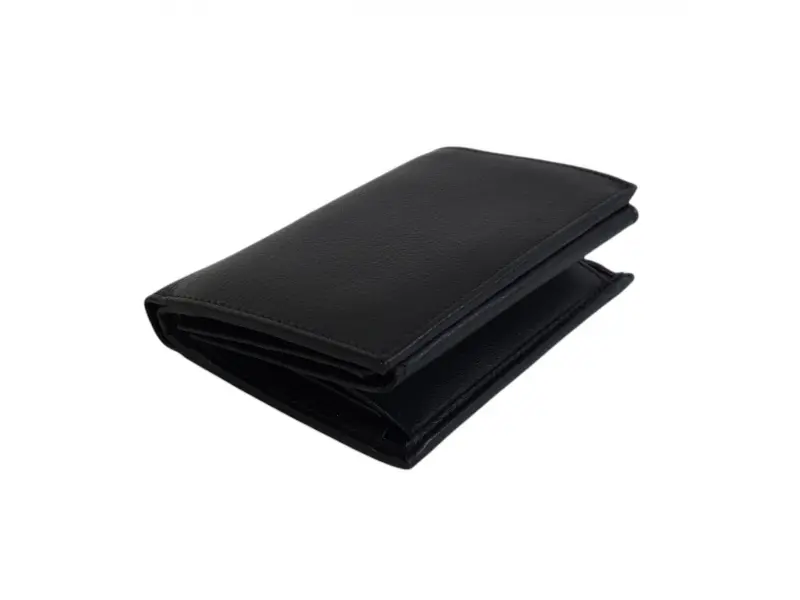 Μαύρο πορτοφόλι από γνήσιο δέρμα υψηλής ποιότητας. Ποιοτικό πορτοφόλι με θήκη για χαρτονομίσματα, υποδοχές για κάρτες και έγγραφα και εσωτερική θήκη για κέρματα.