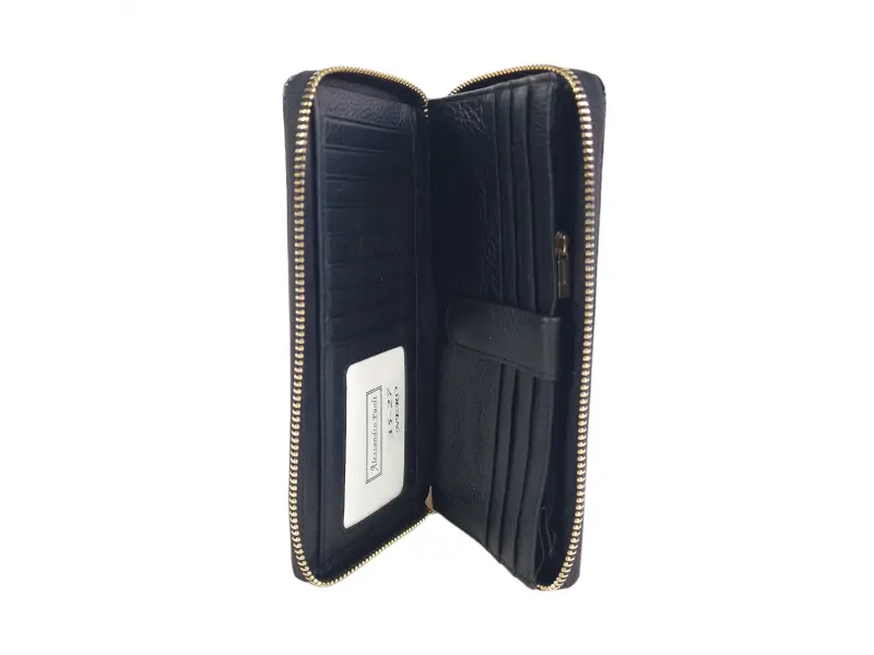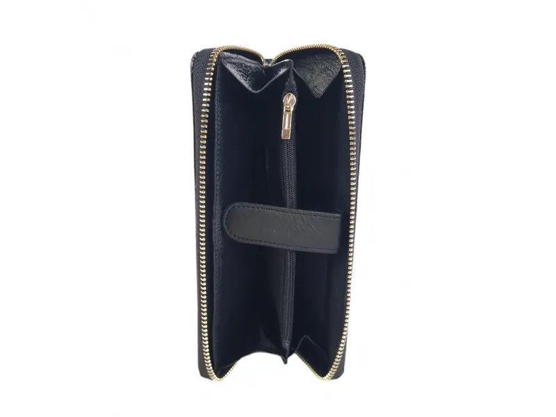 Μεγάλη γυναικεία τσάντα με φερμουάρ - Πορτοφόλι από γνήσιο δέρμα και λουστρίνι. - Θέσεις για κάρτες και προσωπικά έγγραφα. - Θήκη για χαρτονομίσματα. - Τσέπη για κέρματα με φερμουάρ. - Πίσω τσέπη με φερμουάρ.