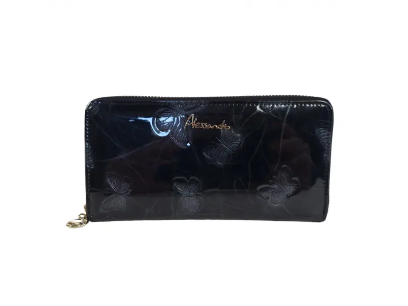 Μαύρο λουστρίνι πορτοφόλι με πεταλούδες | Γυναικείες τσάντες (ePazar.bg)