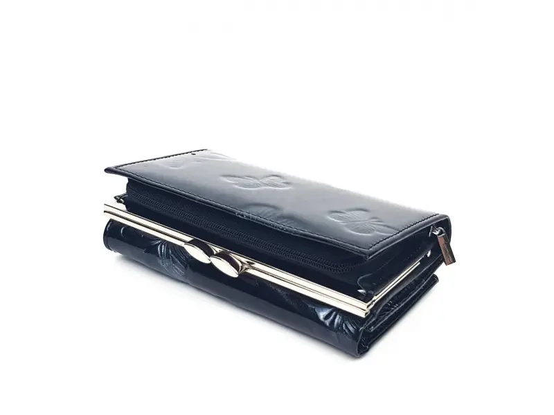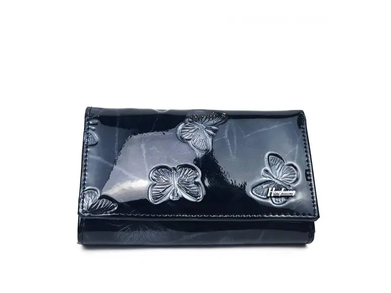 Μαύρο λουστρίνι πορτοφόλι με πεταλούδες - μεσαίο | Γυναικείες τσάντες (ePazar.bg)