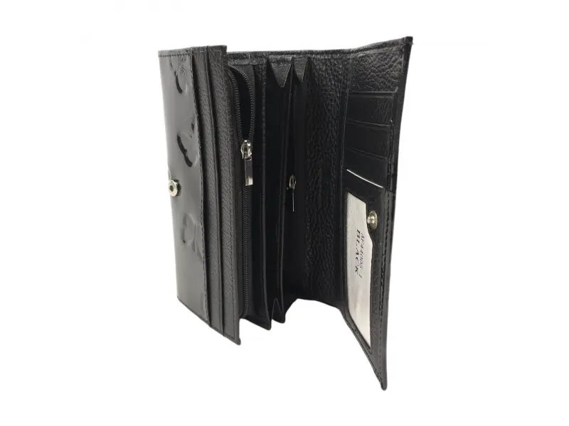 Δερμάτινο γυναικείο πορτοφόλι με χαραγμένες πεταλούδες - Γυναικεία τσάντα από γνήσιο δέρμα και λουστρίνι. - Θέσεις για χαρτονομίσματα. - Θέσεις για κάρτες και προσωπικά έγγραφα. - Θήκη για κέρματα με φερμουάρ. Η διάταξη των πεταλούδων μπορεί να είναι διαφορετική.